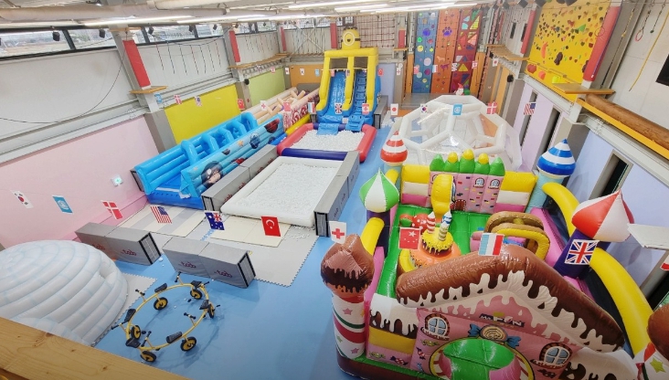 500평 초대형 규모의 다양한 테마시설이 있는 아이들을 위한 실내 놀이공간입니다. 영유아 어린이들부터 초등학생 어린이들까지 안전하고 즐겁게 놀 수 있습니다.